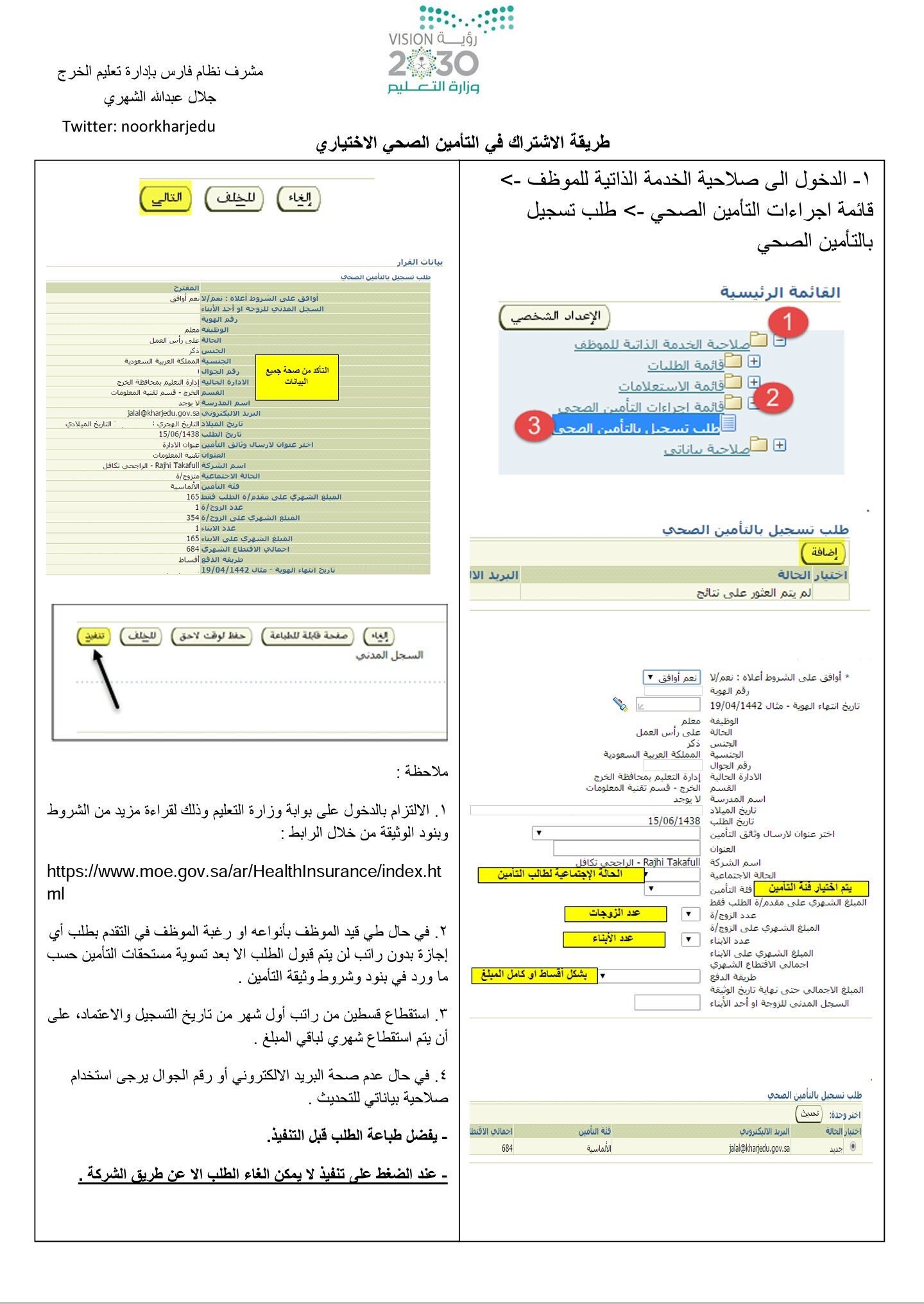 عماد الشريف On Twitter طريقة الاشتراك في التأمين الصحي الاختياري للمعلمين والمعلمات عبر نظام فارس
