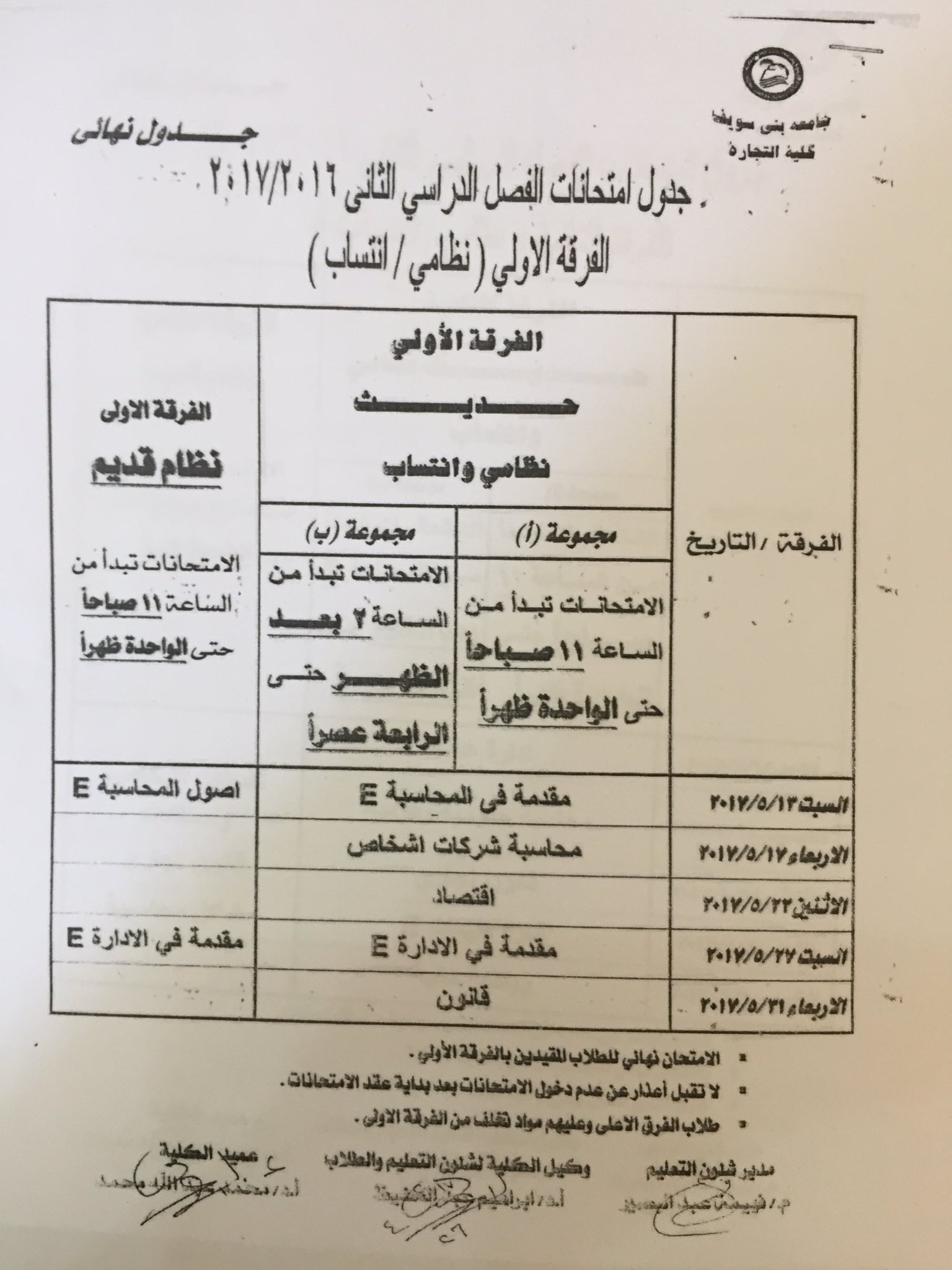 جدول امتحانات الفاينال الصفحة الرسمية لطلاب كلية التجارة جامعة بنى سويف Facebook
