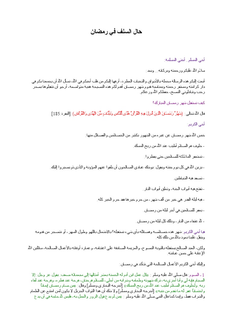 حال الس لف في رمضان مدار الوطن المطوي ات الإسلامية