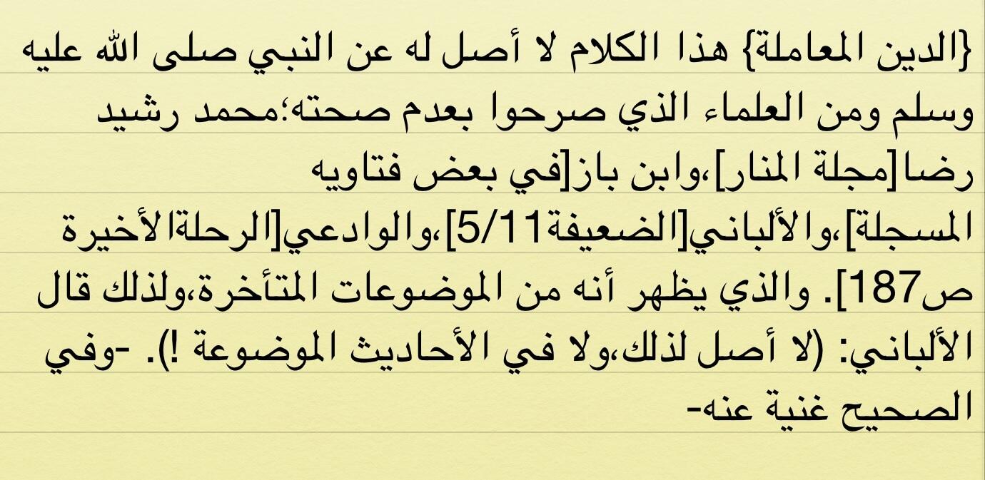 جملة الدين المعاملة ليست حديثا الأحاديث الضعيفة والباطلة فيسبوك