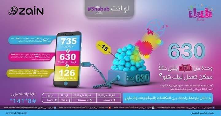 تعر ف على شركة زين إحدى أفضل شركات الاتصالات في السعودية. خدمات الموبايل مرحبا بكم فى زين السودان الصفحة الرئيسية زين السودان zain sudan الان شريحتك زين شباب شاهد الآن مع حزمة عيش شبابك الدفع المقدم خدمات زين شباب السودان للمكالمات زين السودان كيفية. لمعرفة الصلاحية المتبقية للمكالمات الغير محدودة اطلب 142. تعر ف أيضا على عروض زين السعودية للخطوط الصوتية واستمتع بأسعار مخفضة للمكالمات الدولية.