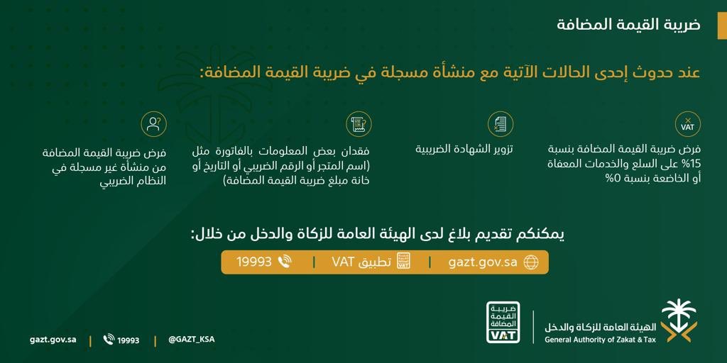 الزكاة والدخل تع رف على أبرز مخالفات المنشآت في ضريبة القيمة المضافة التي تستدعي تقديم بلاغ عن طريق قنوات التواصل لدى الزكاة والدخل الموجز السعودي