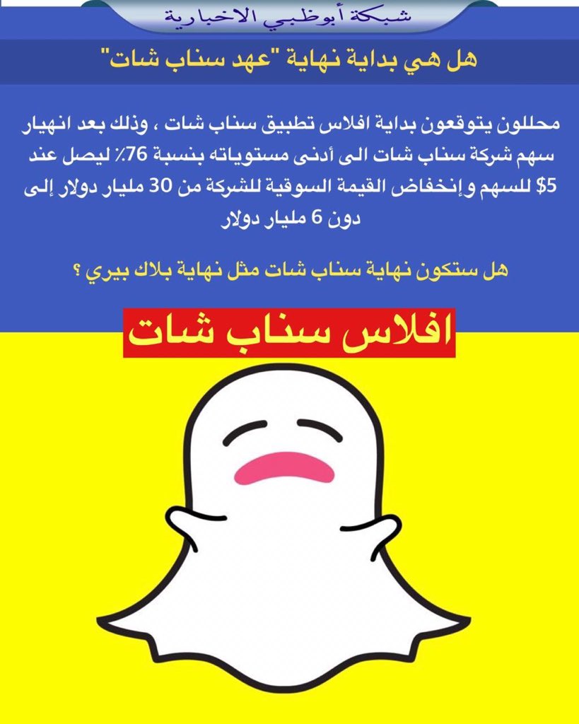 شبكة أبوظبي On Twitter محللون يتوقعون بداية افلاس تطبيق سناب شات وذلك بعد انهيار سهم الشركة الى ادنى مستوياته بنسبة 76