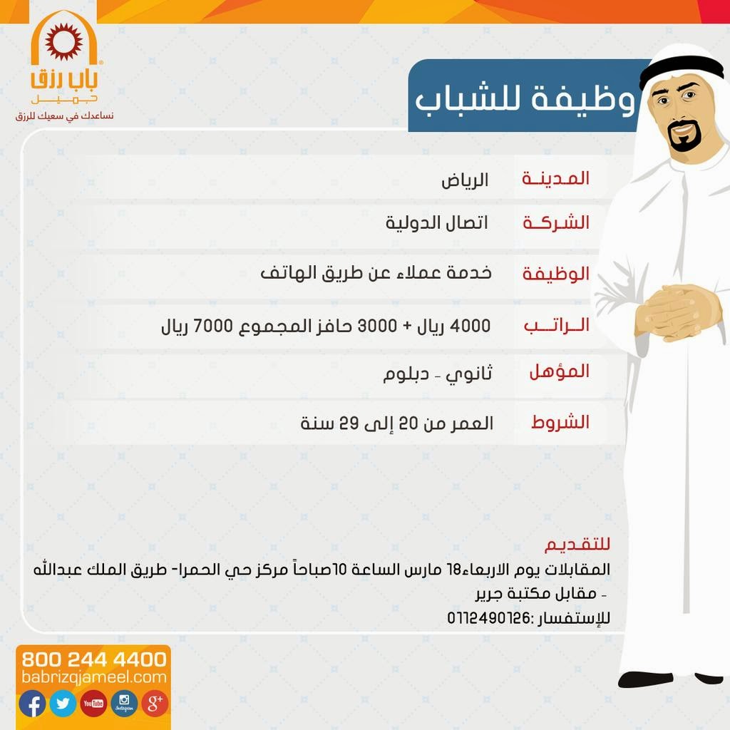 فهد المساعد On Twitter للي معهم الثانوية وأعمارهم بين ١٨ إلى ٣٠ تواصل معي مسئول في شركة إتصال الدولية عندهم مجموعة كبيرة من الوظائف موفقين Https T Co Sloravk63s